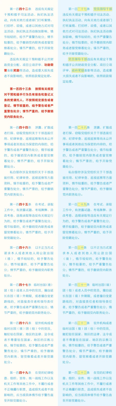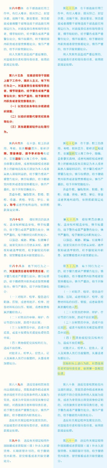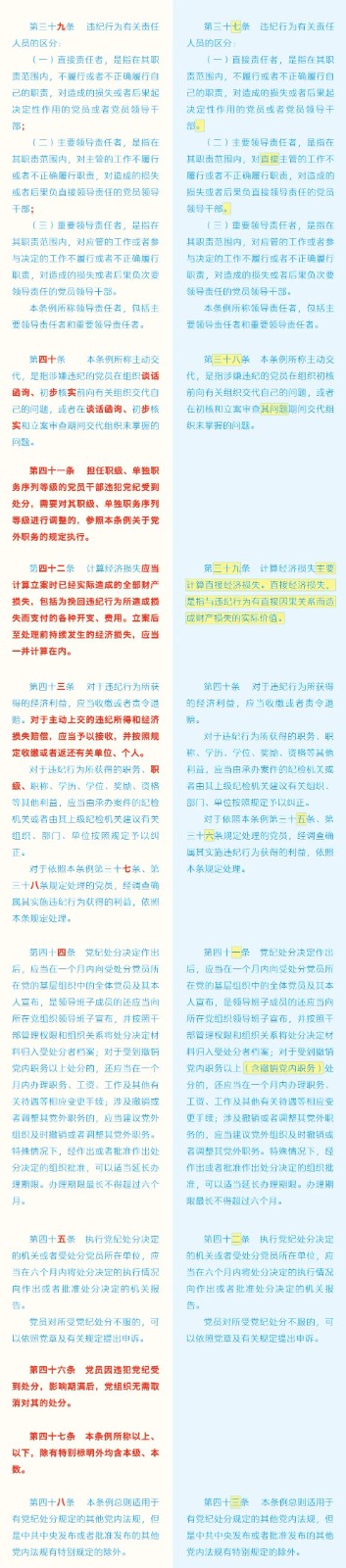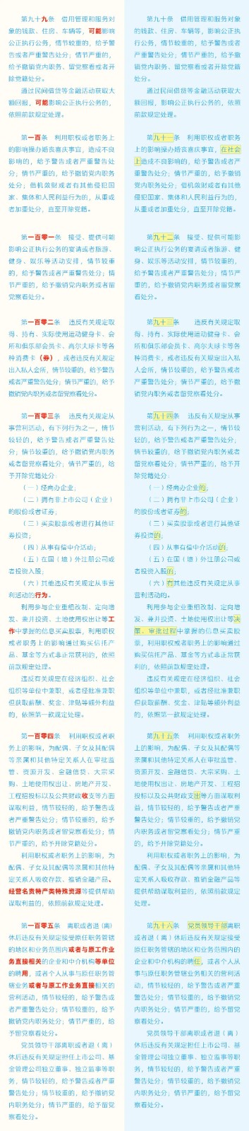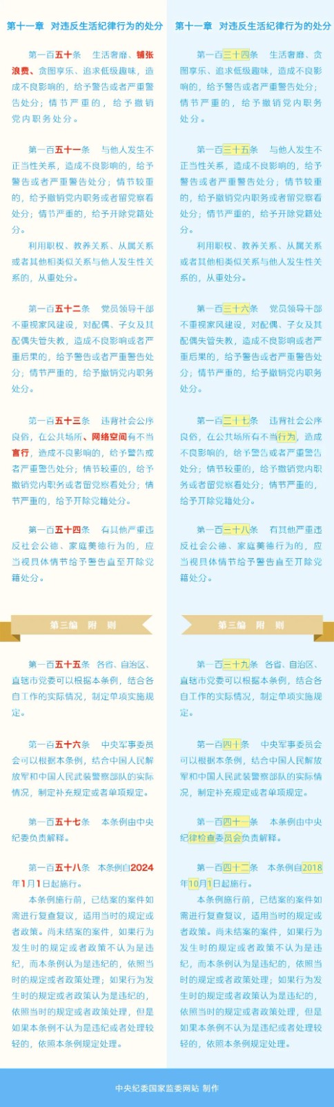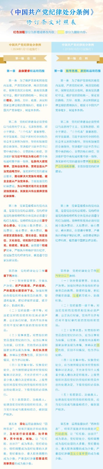 《中國共產(chǎn)黨紀(jì)律處分條例》修訂條文對照表 發(fā)表時(shí)間:2024-01-04